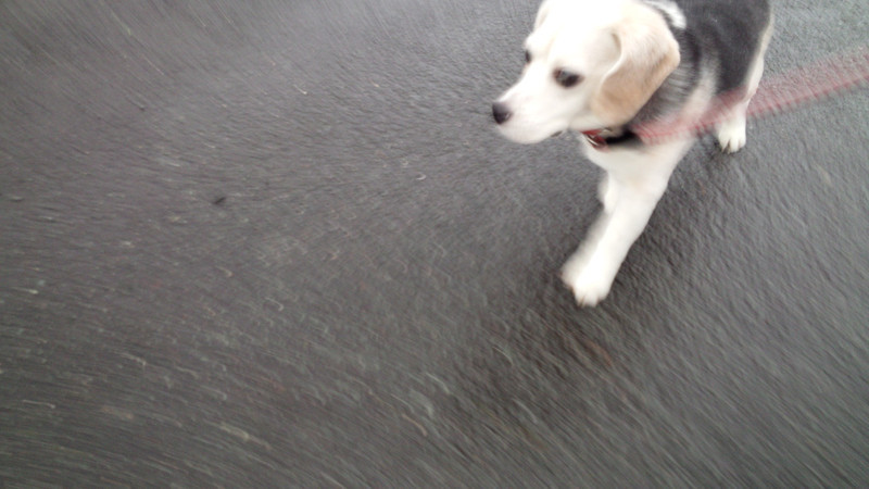 小雨が降る中、おトイレをしにお外へ出発