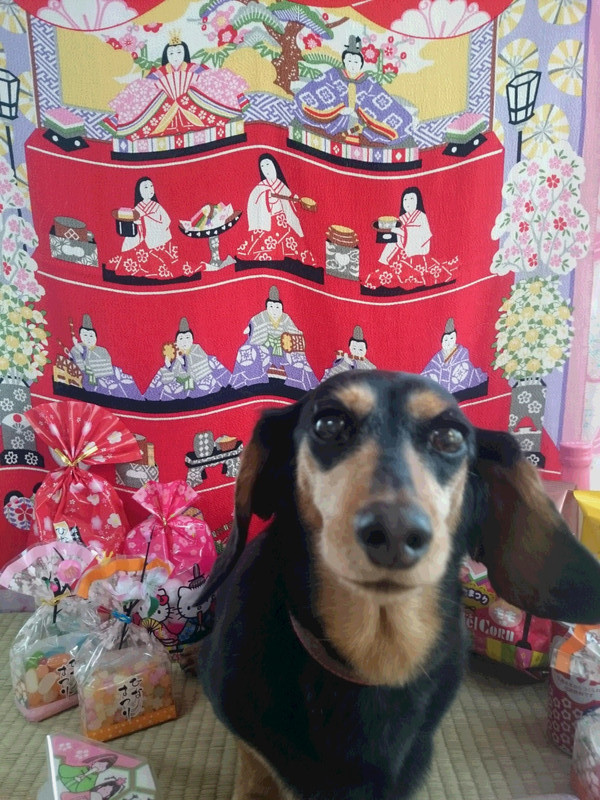 お写真もしっぽビンタでお菓子を蹴散らしながらハイチーズ