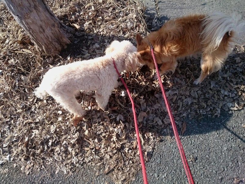 お泊まり中に仲良くなったチビちゃんと今日も楽しくお散歩に行って来ました