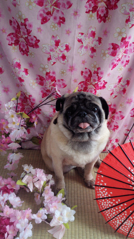 ピンクや赤が似合うブッチャーちゃん、桜に囲まれてハイチーズ📷