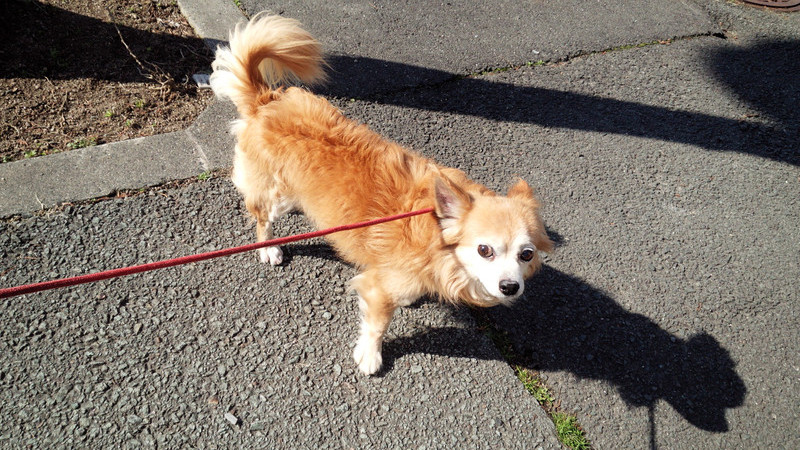 周りの匂いをくんくんとかぎながら、お散歩を満喫中~