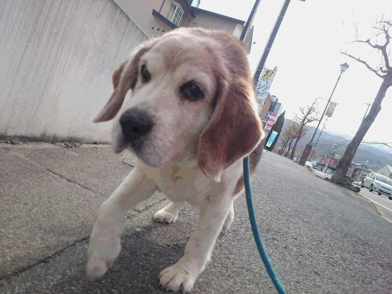 朝のお散歩でエネルギーを使い果たしたのか夕方は短い距離のお散歩になりました