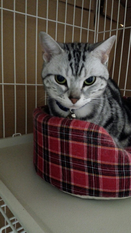 いつものお気に入りのベッドでくつろぎ中のシーサーちゃん