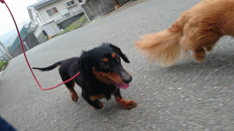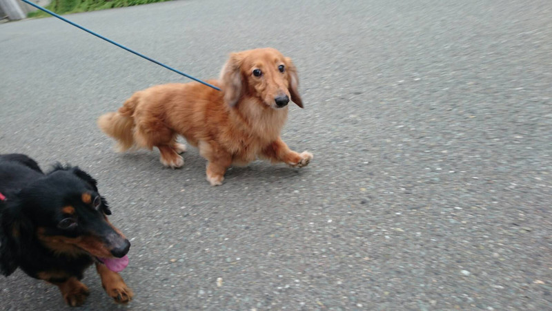 二人ともとっても仲良しでお散歩中並んで歩くかピッタリくっついて歩くかと言う感じです