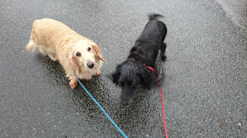 お散歩中間地点で早くもぐっしょり濡れてます