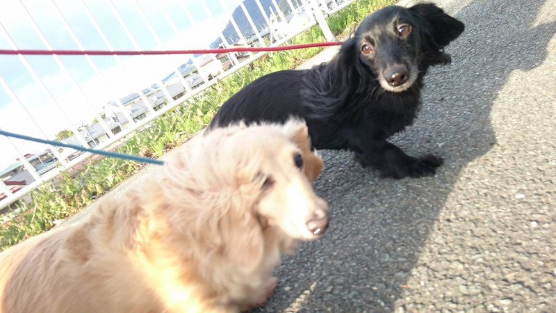 クゥちゃんが先頭に立ってミルちゃんの事を気に掛けながらも二人仲良く並んでお散歩楽しかったね