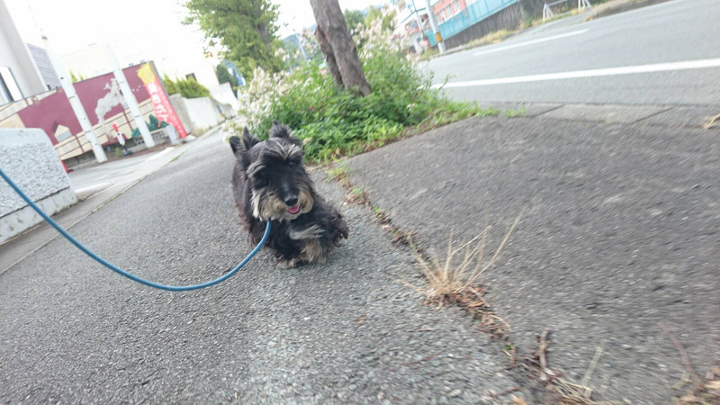お散歩を担当するスタッフによって歩き方が若干変わる様子のりくちゃん
