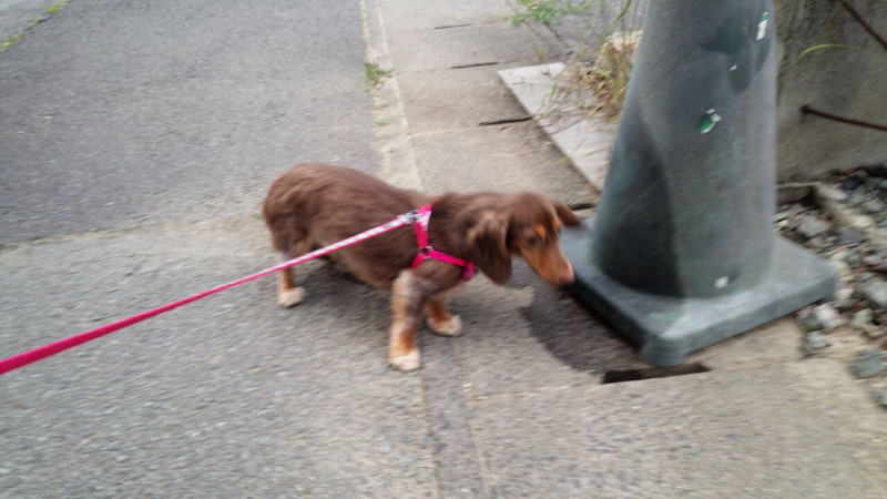 いろいろな臭いが飛び交う散歩コースに情報収集中の花野ちゃん