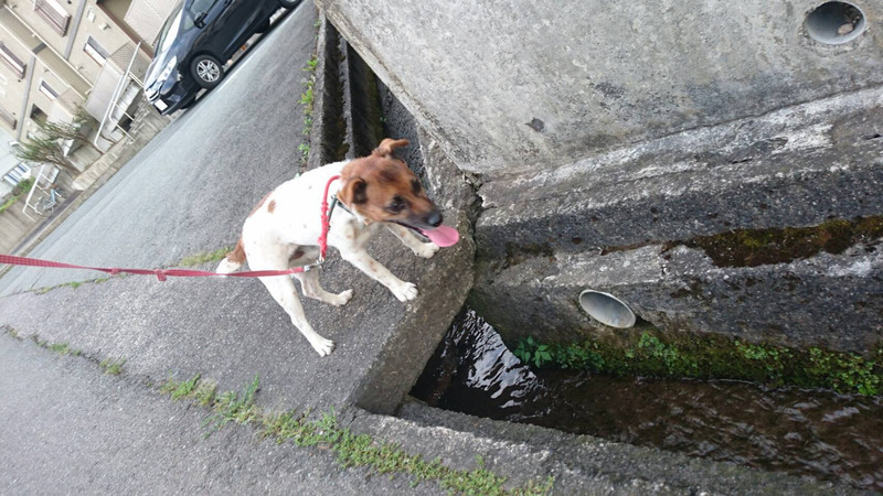 側溝を流れる水が気になるようで一点見つめ入りました