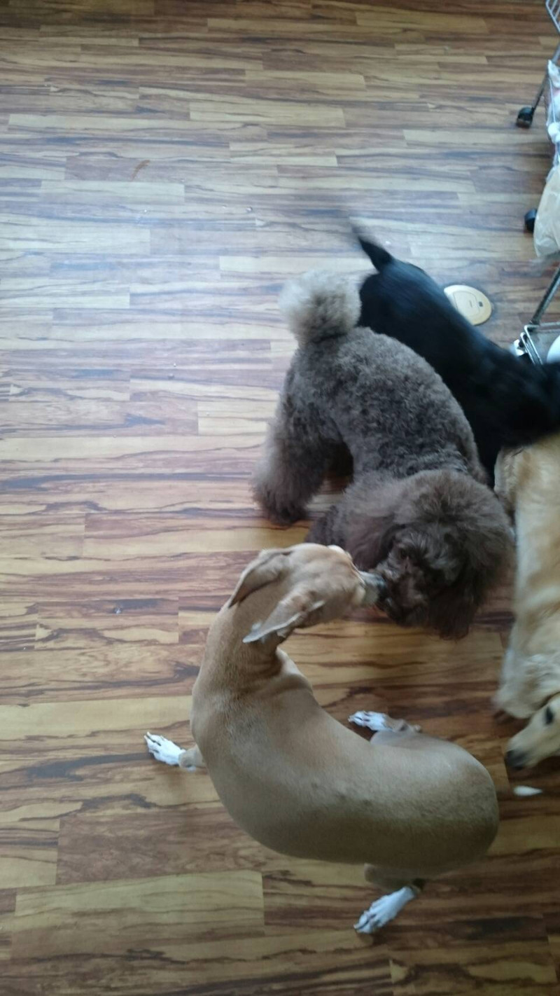 お散歩後は他のわんちゃん達と交流