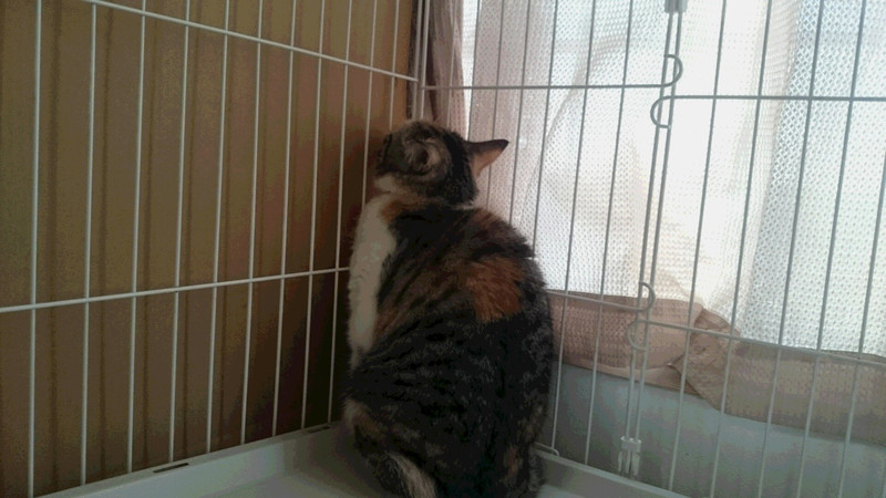 ゲージに入って早々に隅っこへ移動。