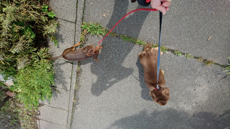 朝はお友達のレオンちゃんとお散歩