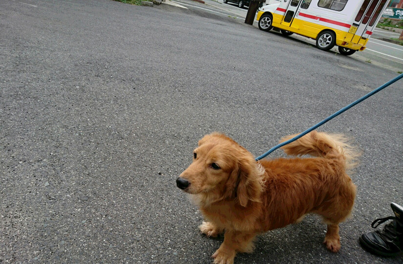 ロンちゃんはリードを自ら引っ張ってお外に向かっていました