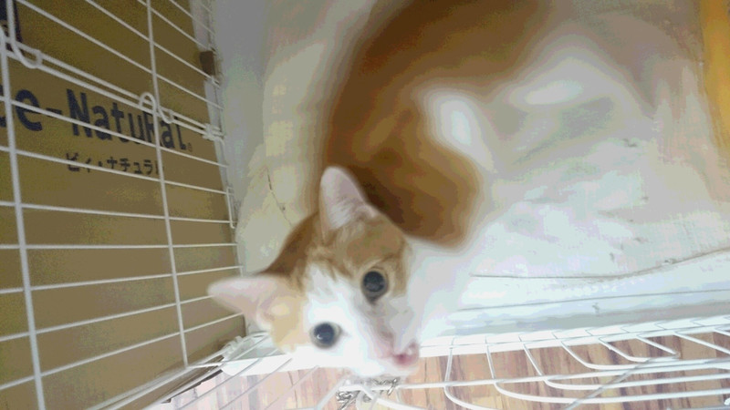つむぎちゃんはおもちゃを通り越してスタッフの肩の上にピョン
