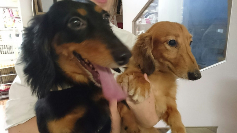 ダックスのレオちゃん&ラクちゃん お泊まりの様子