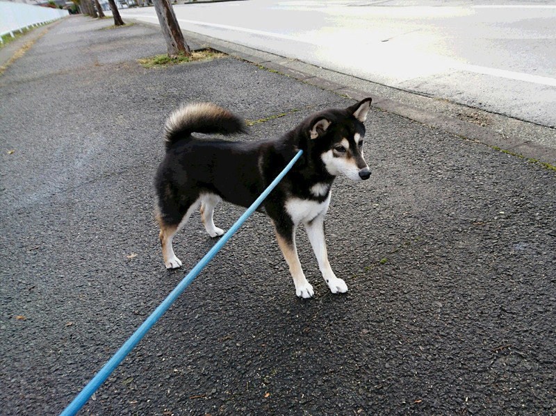 尻尾をふりふりしてお散歩中のあずきちゃん