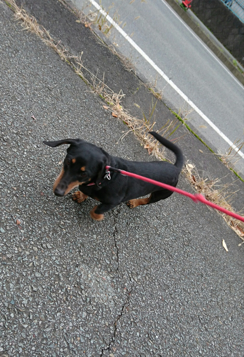 尻尾をふりながらるんるんでお散歩中