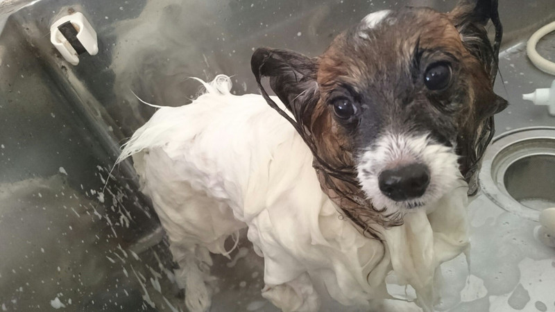 今日はシャンプー中のクリスちゃんをパシャリ