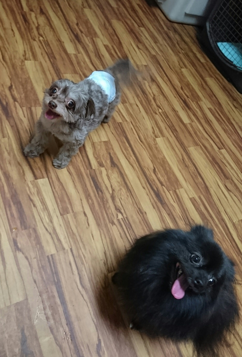 今日は夕方から雪が降っていたので、室内でお友達のさきちゃんと仲良く遊びました
