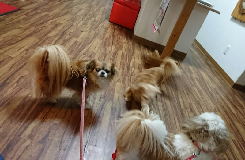 ダックスのななちゃん MIXのひかりちゃん みらいちゃん お泊まりの様子
