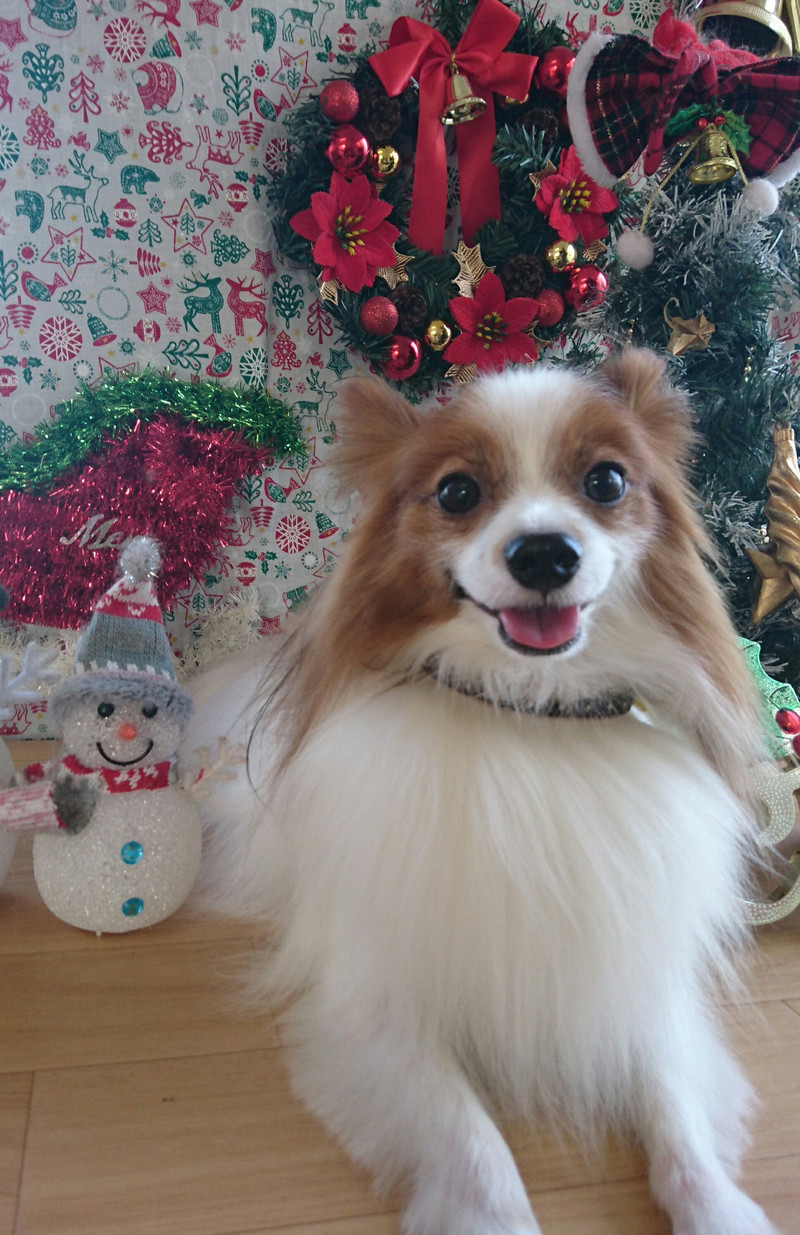 今日はクリスマス仕様のリボンを付けてご帰宅です