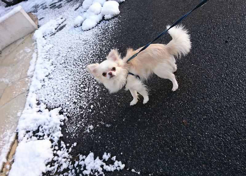 雪が残っているところを歩いていました(*´˘`*)♡