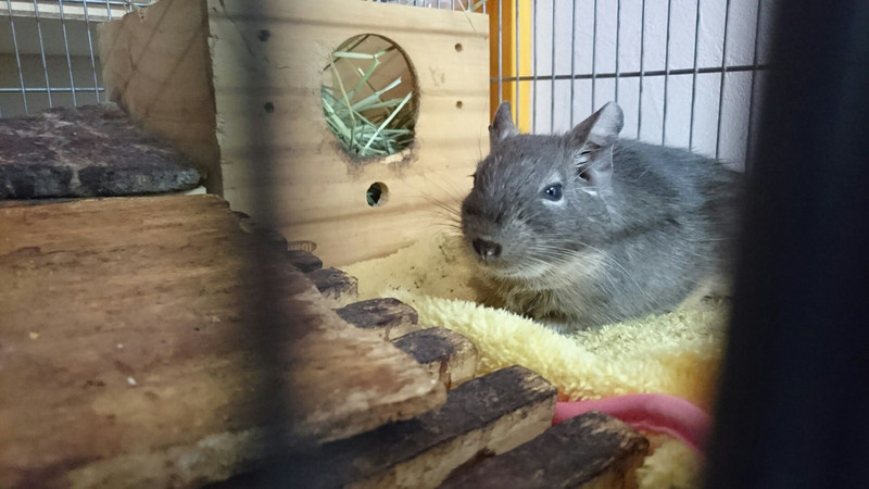デグーのもんちゃん お泊まりの様子