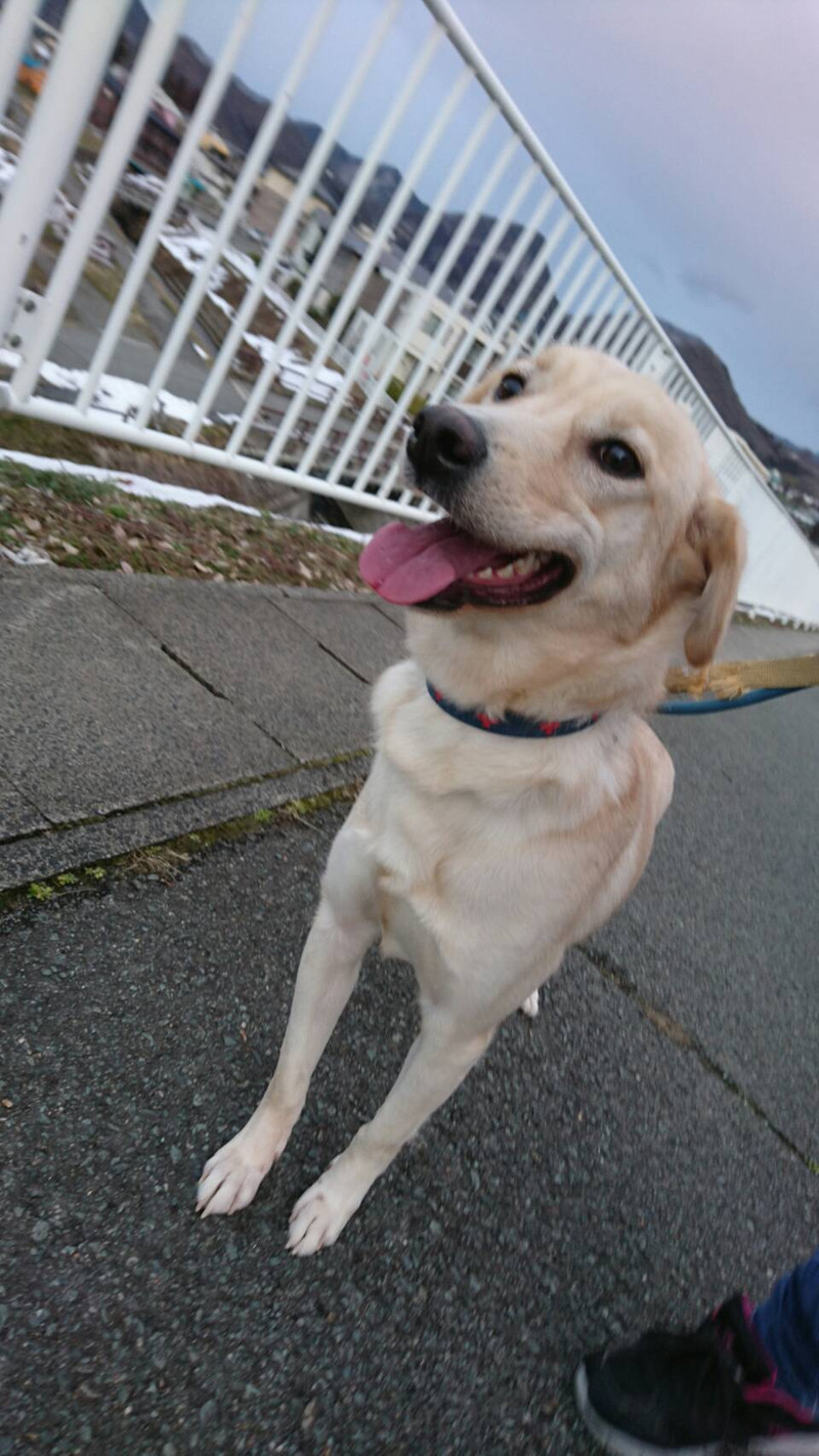 ドキドキの初お泊まりを体験中ですが、周りの心配をよそに元気いっぱいお散歩に行ってきました