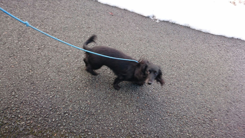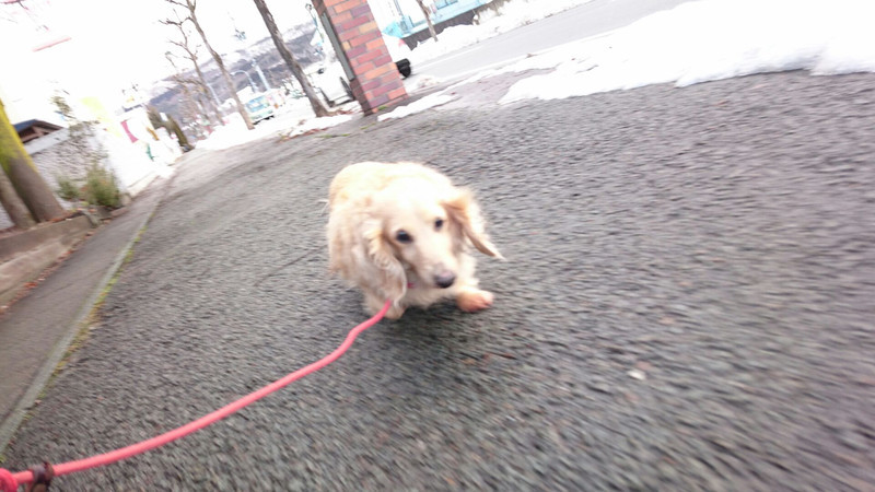 一生懸命歩くもクゥちゃんのスピードに付いていけず挫け気味のミルちゃん