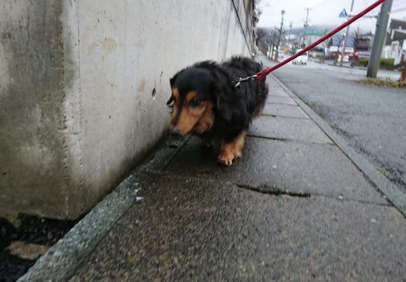 小雨の中おトイレをしに、ささっとお外へ