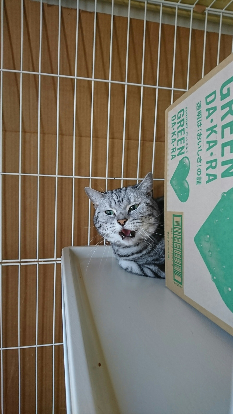 今日はダンボールハウスを少しずらしてお家の影に隠れてます