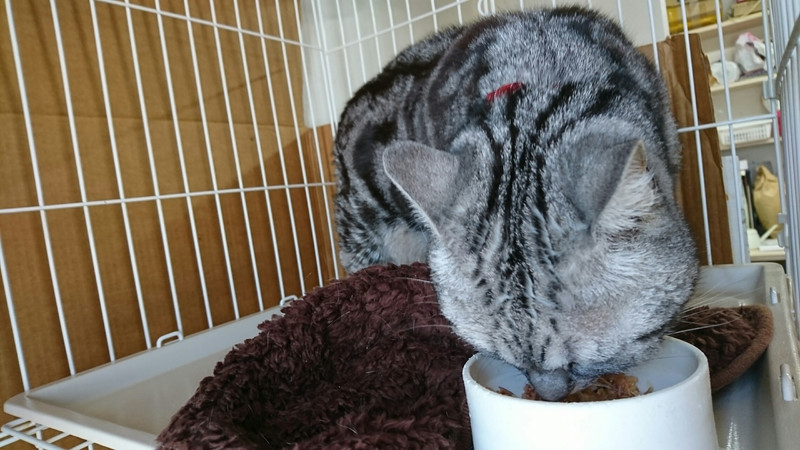 昨日はご飯をまったく手をつけることなく終わってしまいましたが、今日は缶詰を口にしてくれました