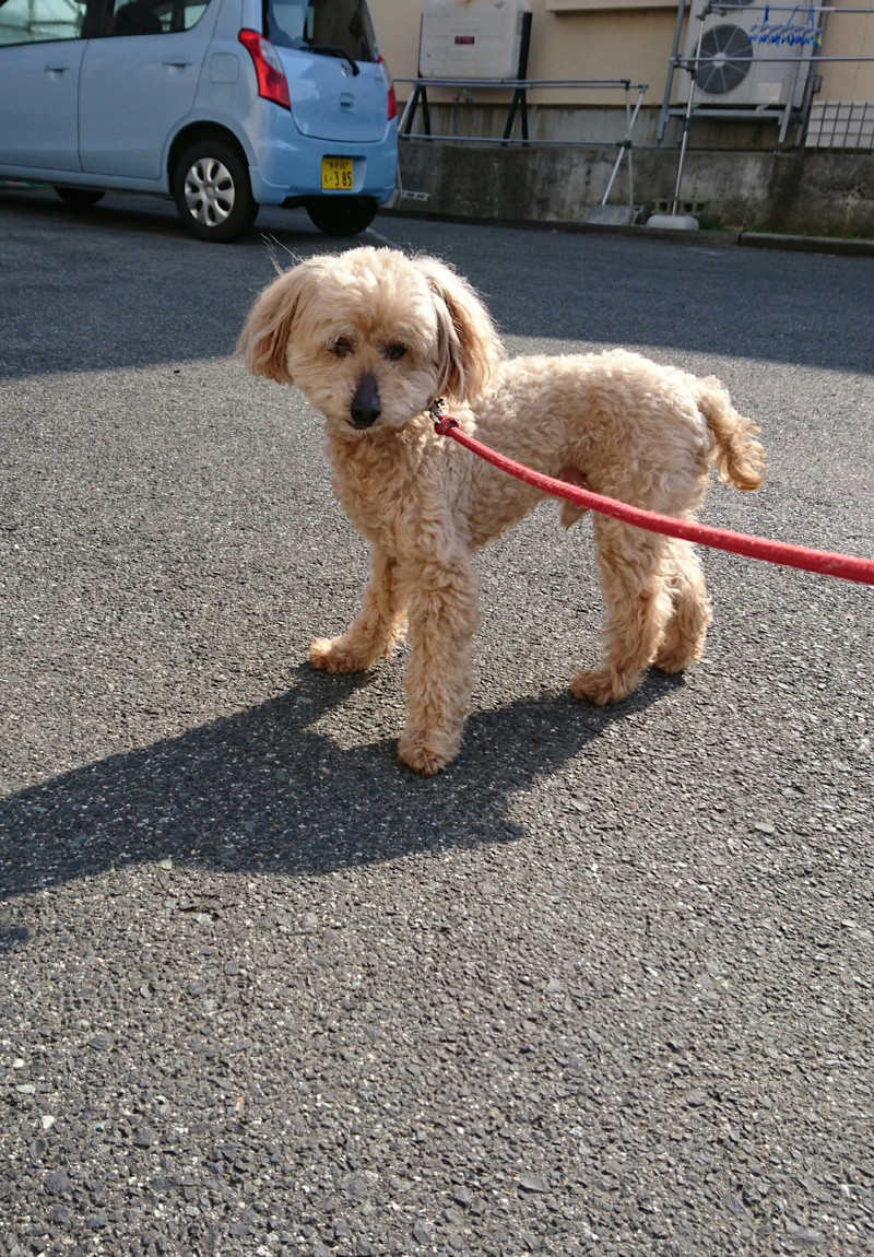 お散歩中近所の方に上手にご挨拶できたショコラちゃん