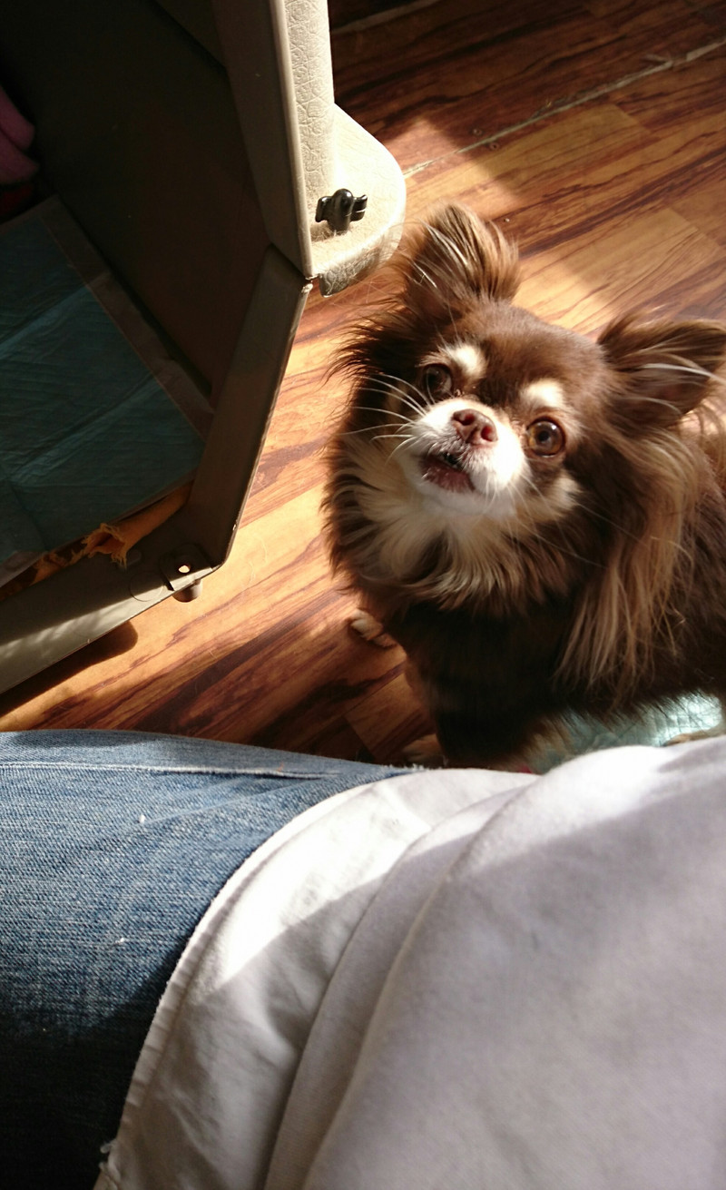 お泊まり中のあんずちゃんです