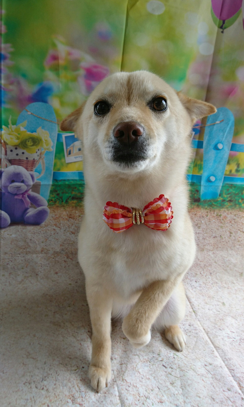 いつもはバンダナですが、今日はリボンでイメージチェンジ