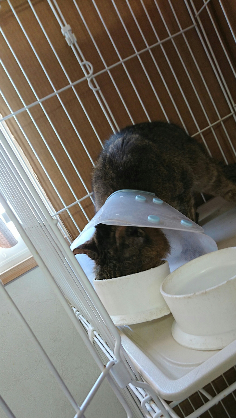 今日は朝スタッフがご飯をあげるとすぐに降りてきてご飯time