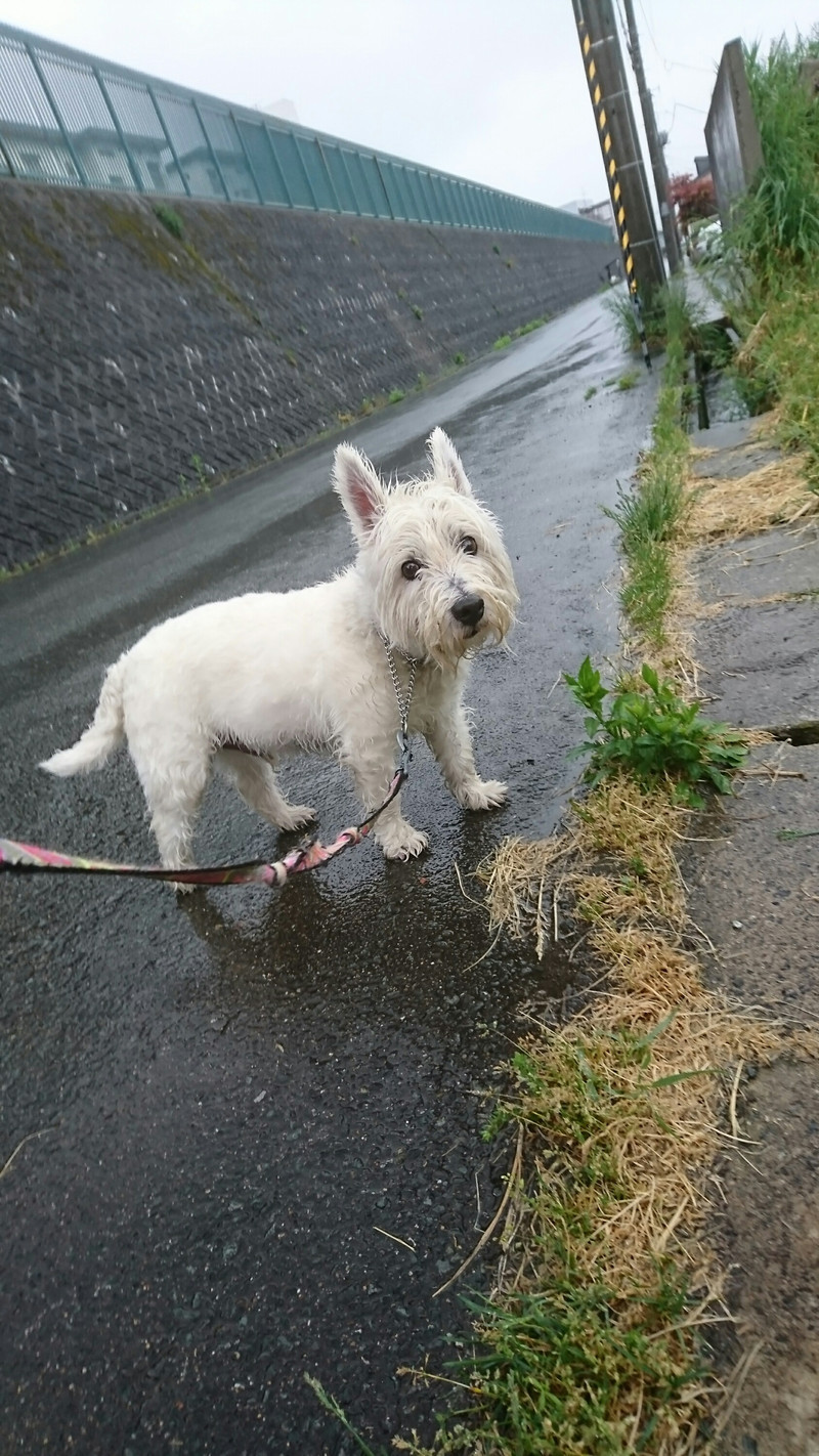 今日は生憎の雨ですが、雨にも負けずに元気いっぱいお散歩に行ってきたよ