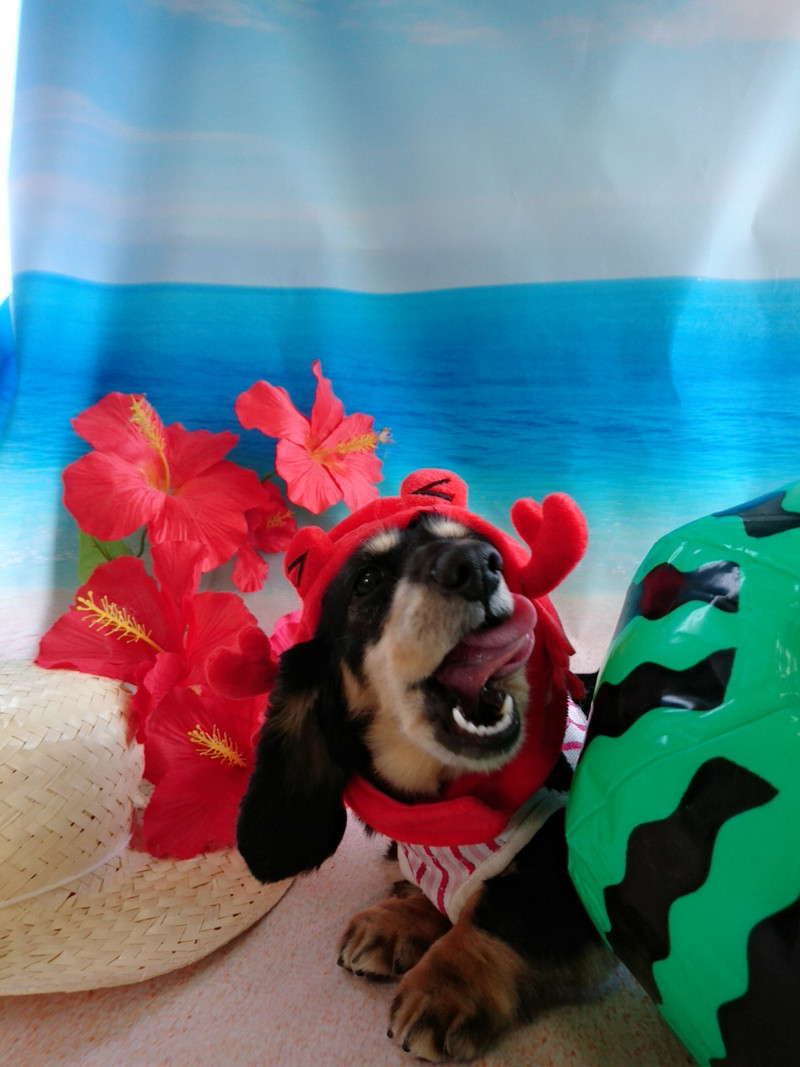 カニさんの被り物が気になるクーちゃん