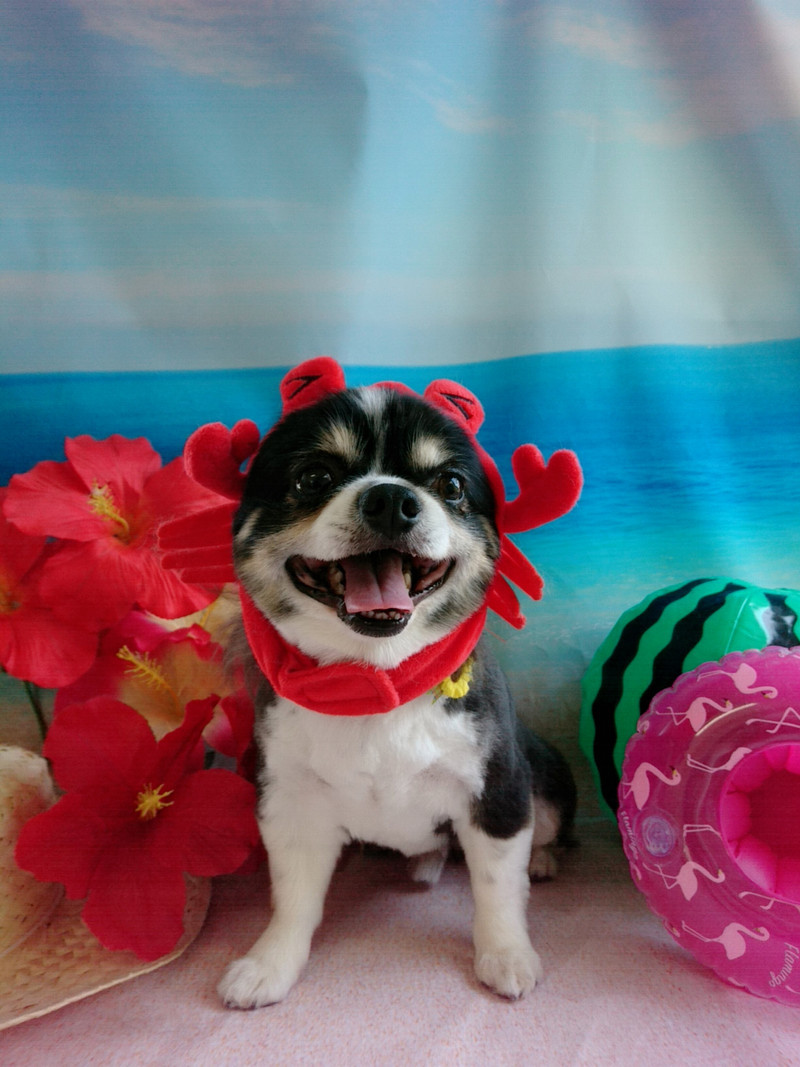 今日はカニさんを上手に被って笑顔で記念撮影です