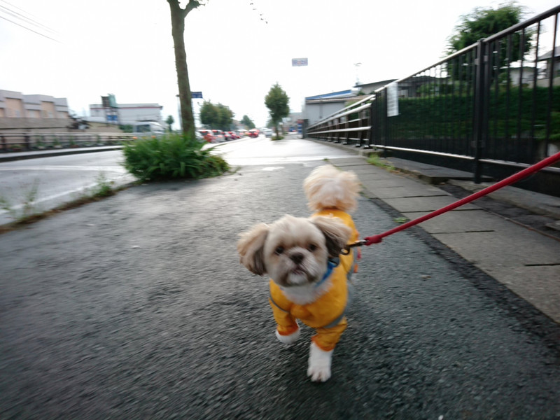 雨が降るなかmyカッパを着てお散歩へ