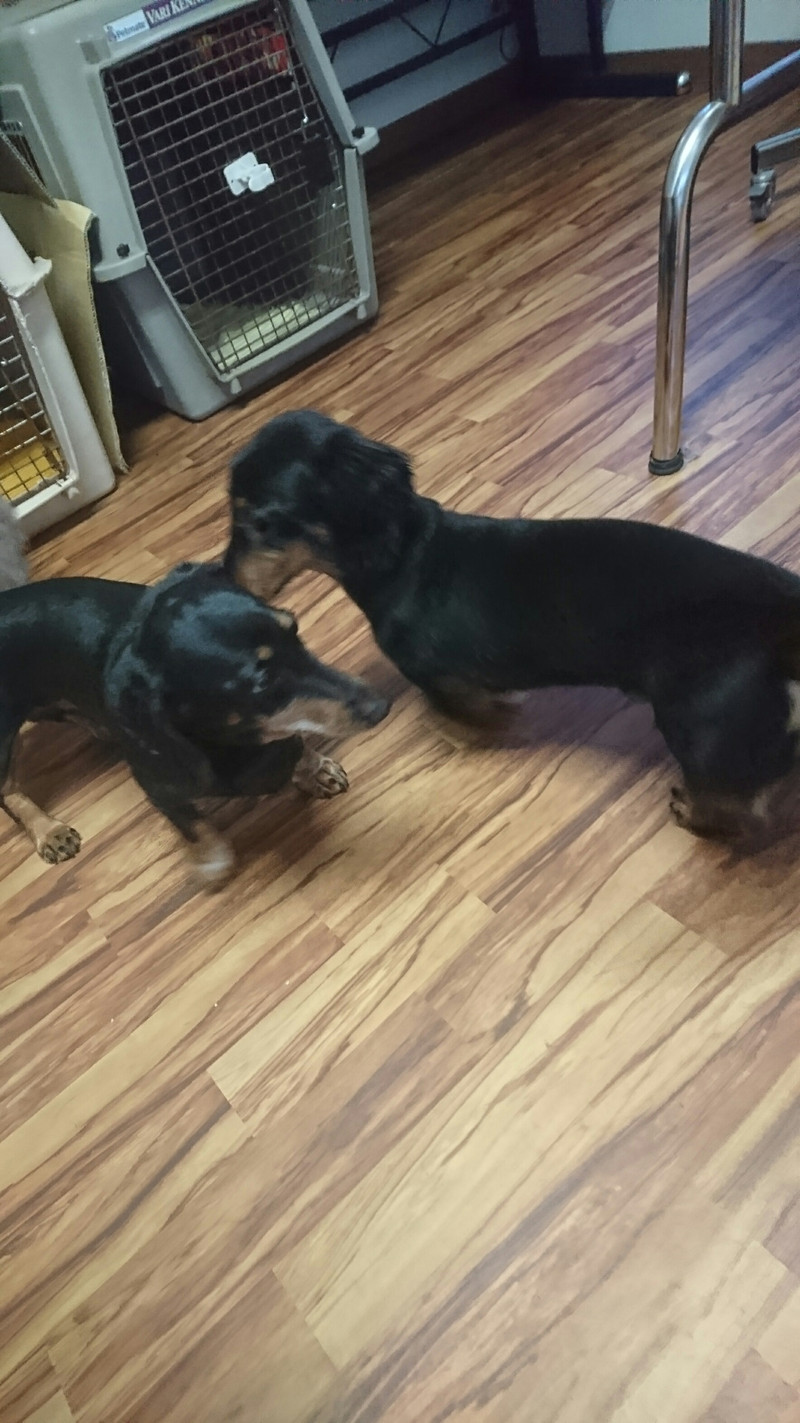 今日はダックスのお友達が出来てみんなで仲良くお店の中を駆け回っていました