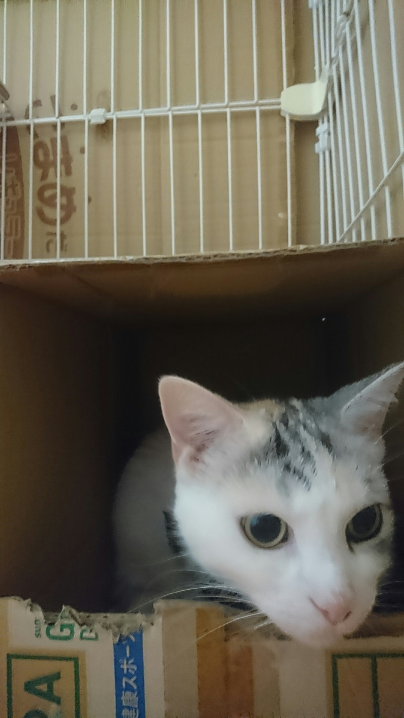 お泊まり中は2階へは上がった形跡もなく終始箱に入って寛いでいました