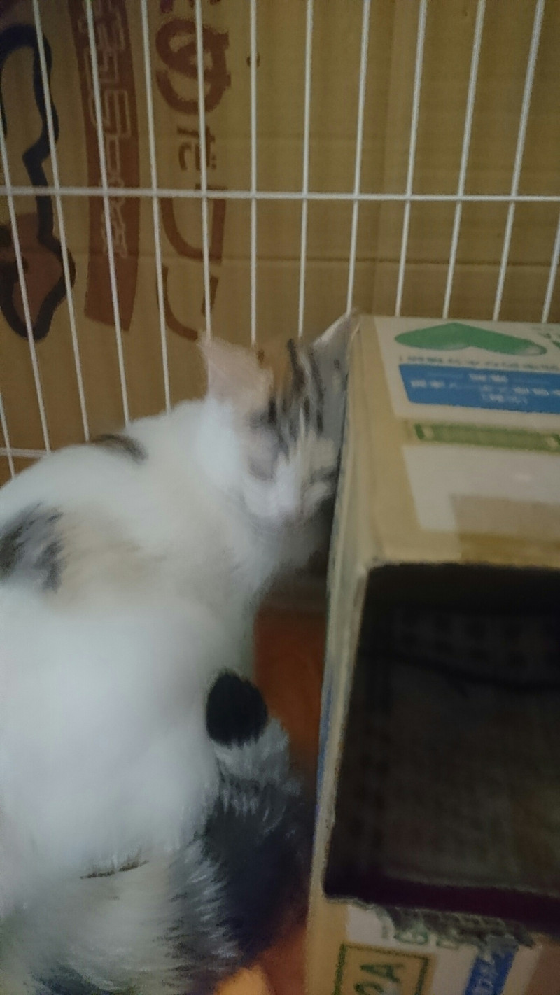 隠れ家の箱も設置してみましたが、ずっとスリスリして止まりません