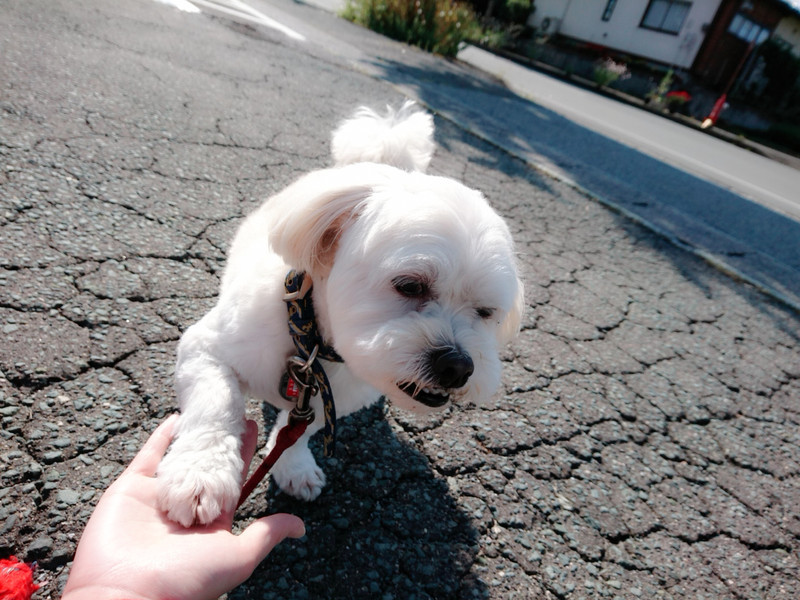 お散歩中上手にお手をくれたくっきーちゃん