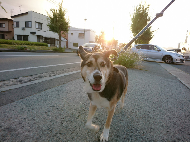 夕方はスタッフと元気にお散歩へ出発