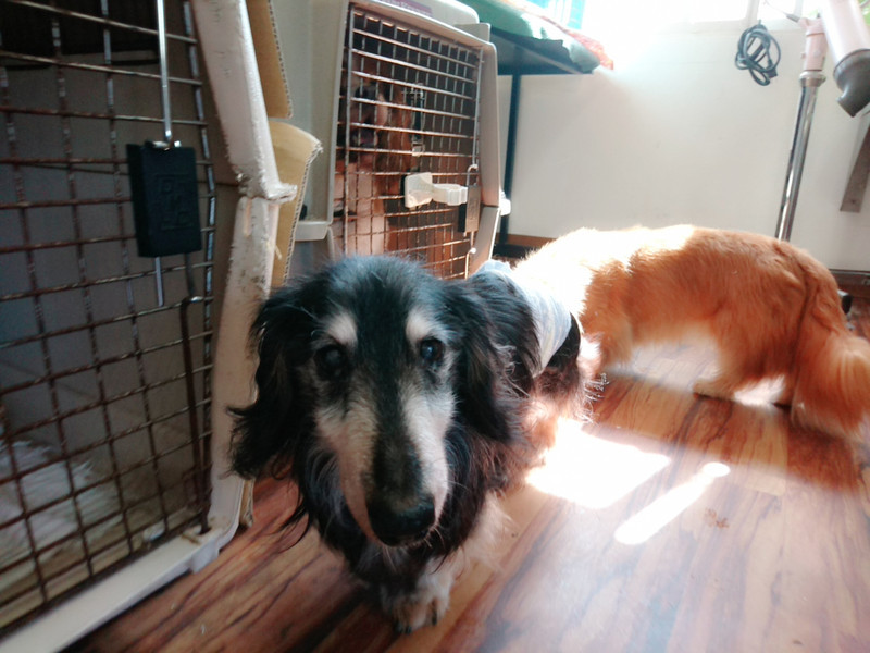 ダックスのジャッキーちゃん リンダちゃん お泊まりの様子