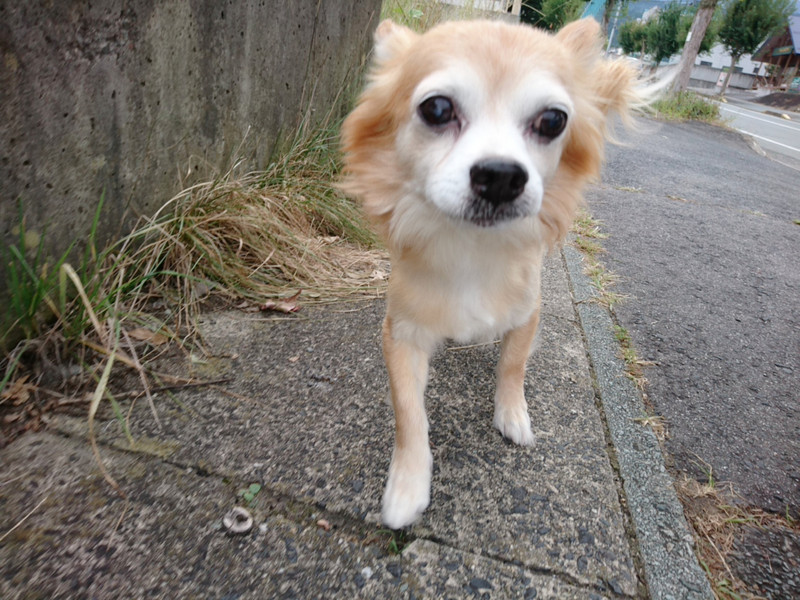 尻尾をふりふりしながらスタッフに寄ってきてくれるチビちゃん