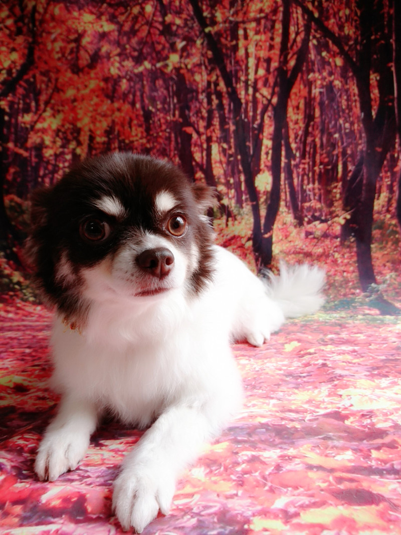 作業中は尻尾をふりふりにこにこなチョコちゃんですが、写真撮影のときは真剣な顔つきに