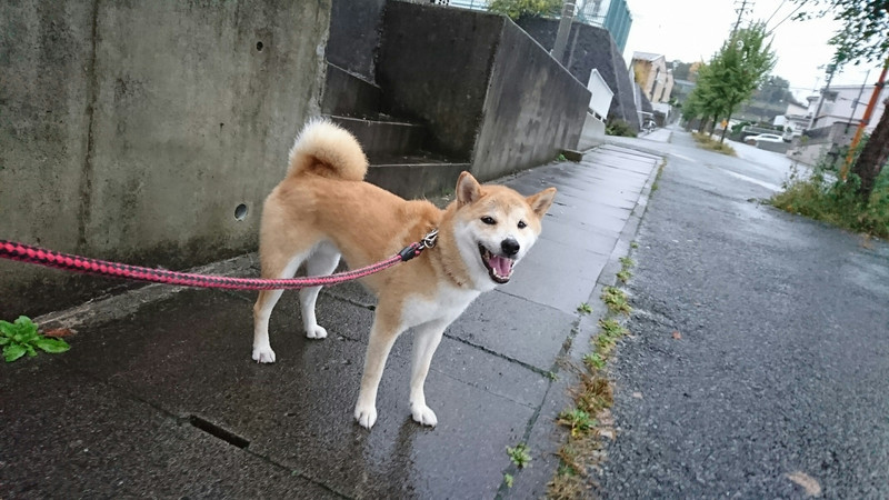 今日は残念ながら朝から雨模様でしたが、雨にも負けず元気いっぱいルンルンでお散歩に行ってきました