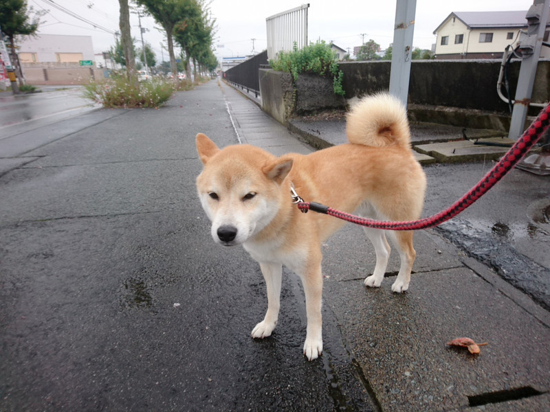 小雨が降るなか元気いっぱいにお散歩へ出発